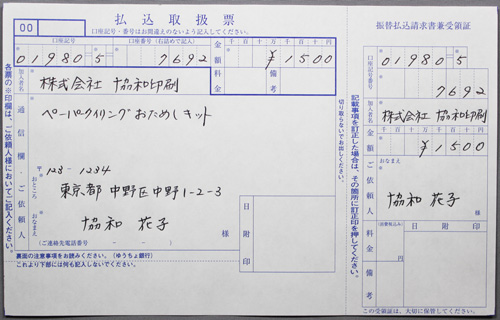 郵便局または金融機関の「入金控」を領収書とさせて頂きます。