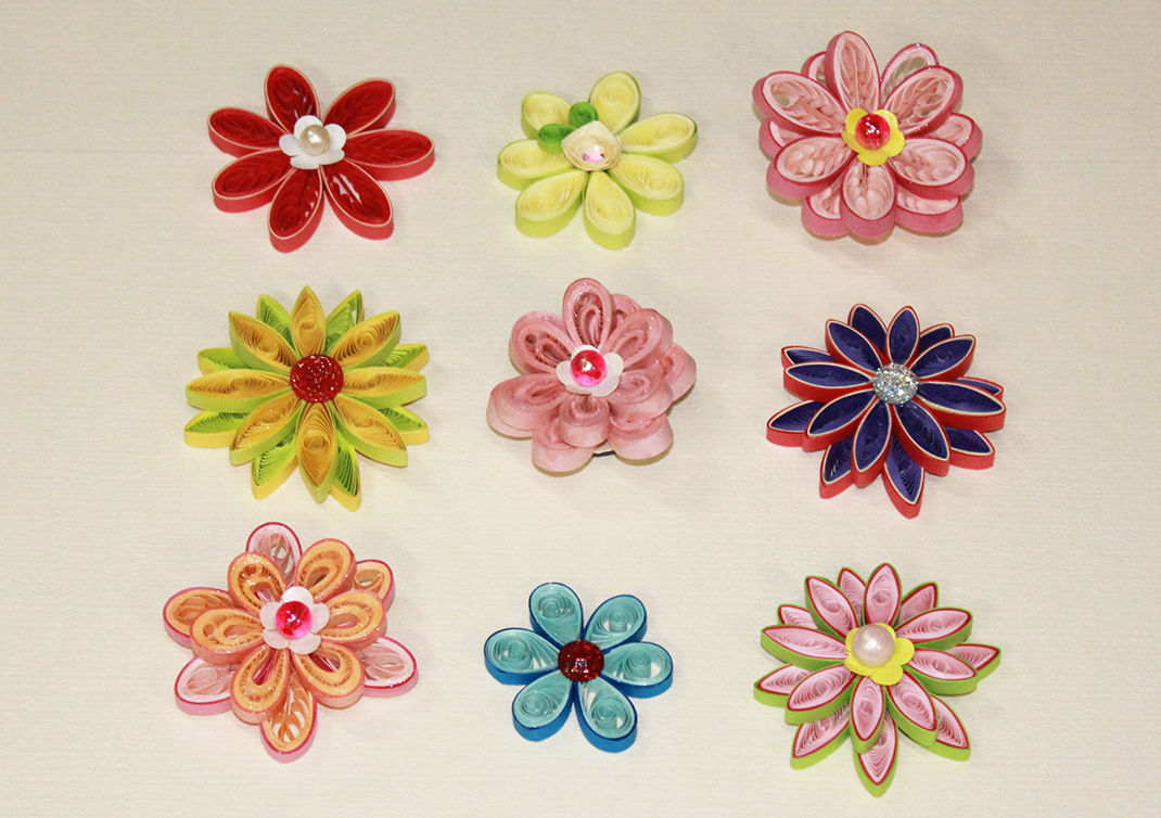 作品紹介 花飾りのフォトフレーム 奥行きのあるところがポイントです。 スタッフ R・N作 作者コメント フォトフレームにペーパークイリングを飾ったら綺麗かと思い試してみました (*/▽\*) お花のブローチ 小さなお花をカラフルに! ご利用者様 りっちゃん様作 作者コメント 色々な色の紙を合わせることにより、また形を変えることによりイメージが変わって来て楽しみながらつくれますね。 スタッフからのコメント 可愛いお花ができましたね♪